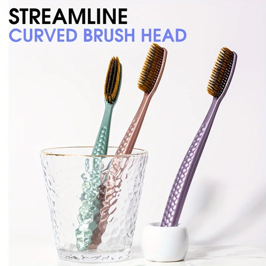 soft hair toothbrush 5pcs bag with curved extended brush head for deep oral cleaning in 5 colors for adults,