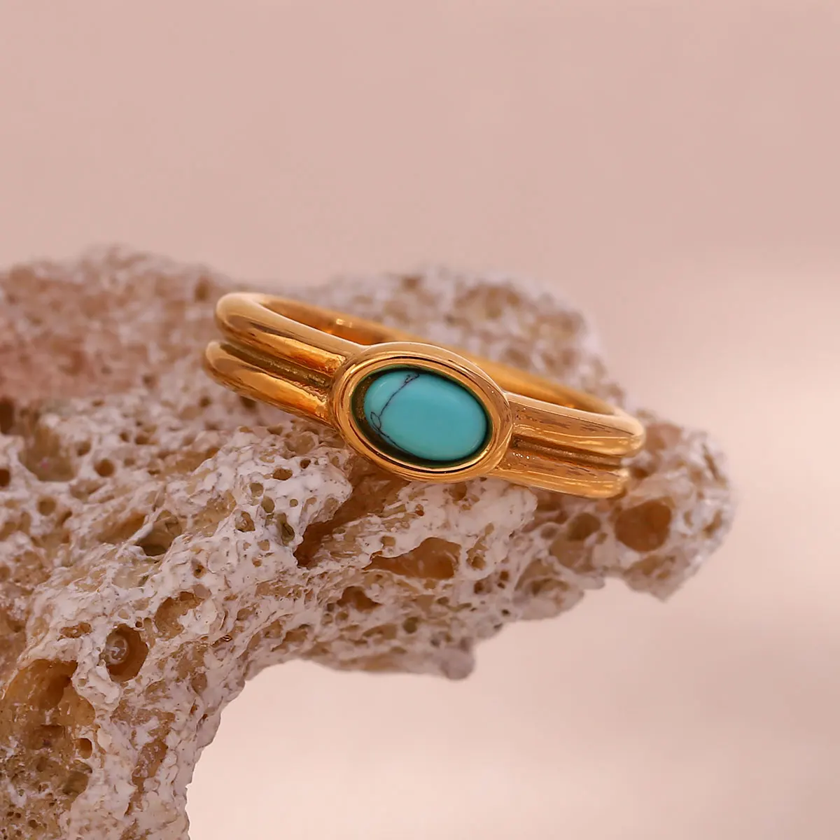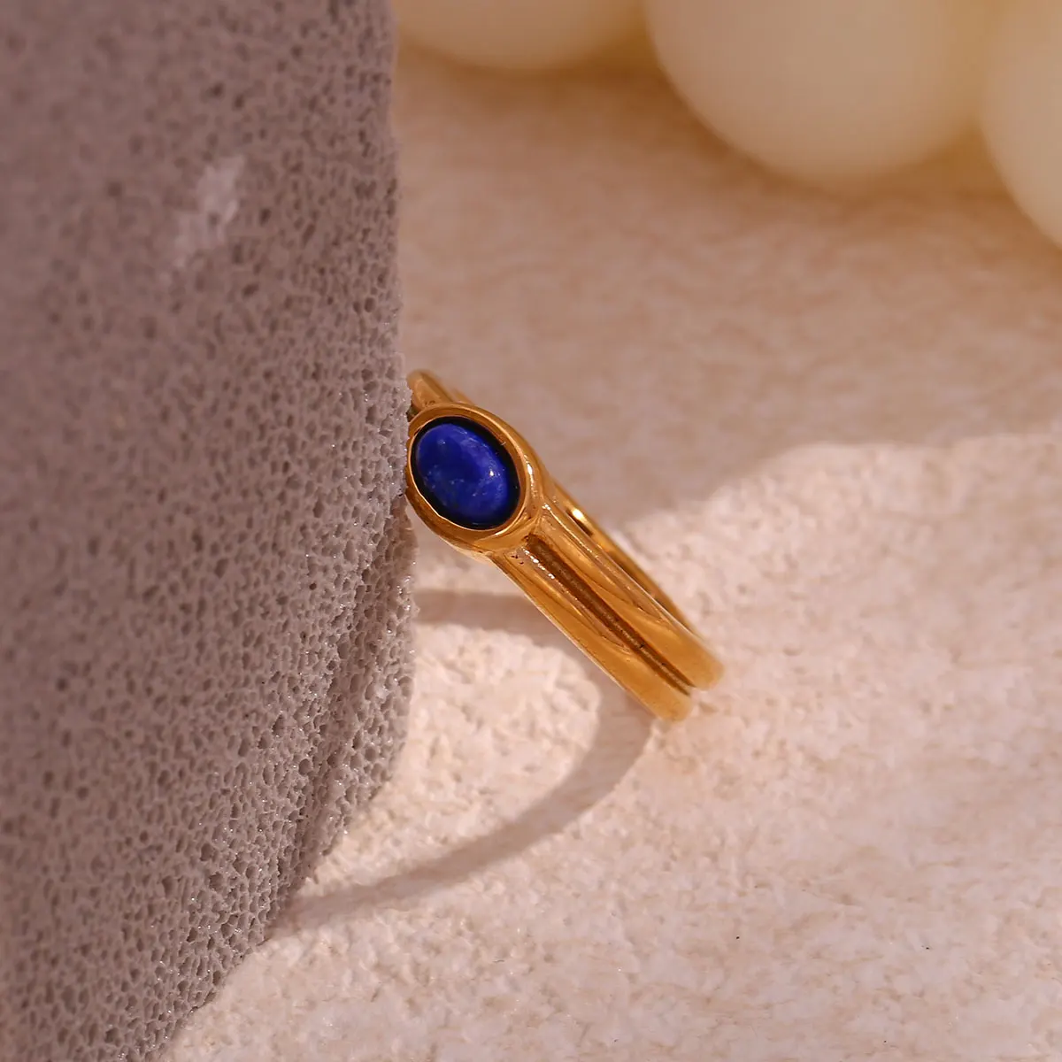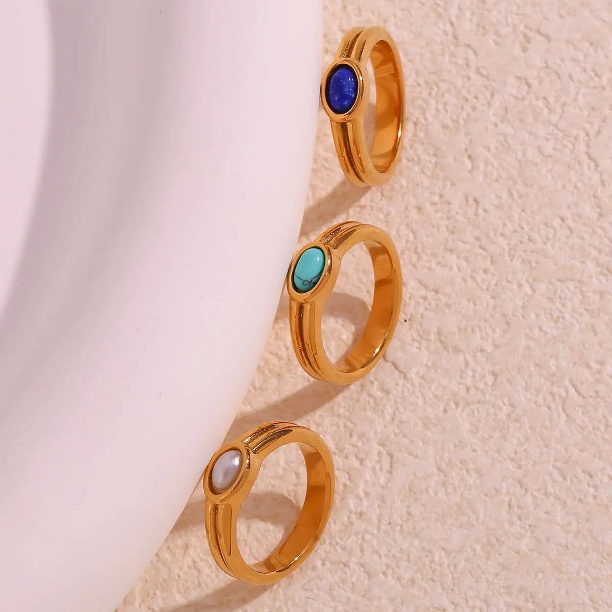 E.B.belle Females Y2K Accessories Natural Stone Lapis Turquoise Pearl Paved Stainless Steel Non Tarnished Rings For Woman