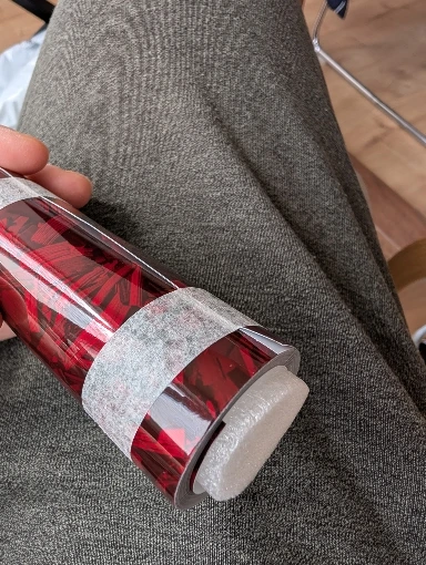 I have lifted the sticky part a bit so everyone can see how it looks from the other side. The material is great, you can feel that it's something that will last.