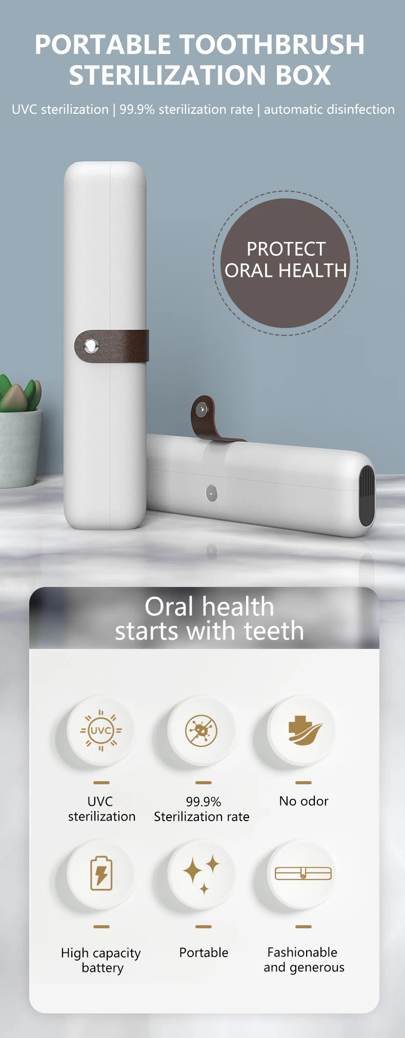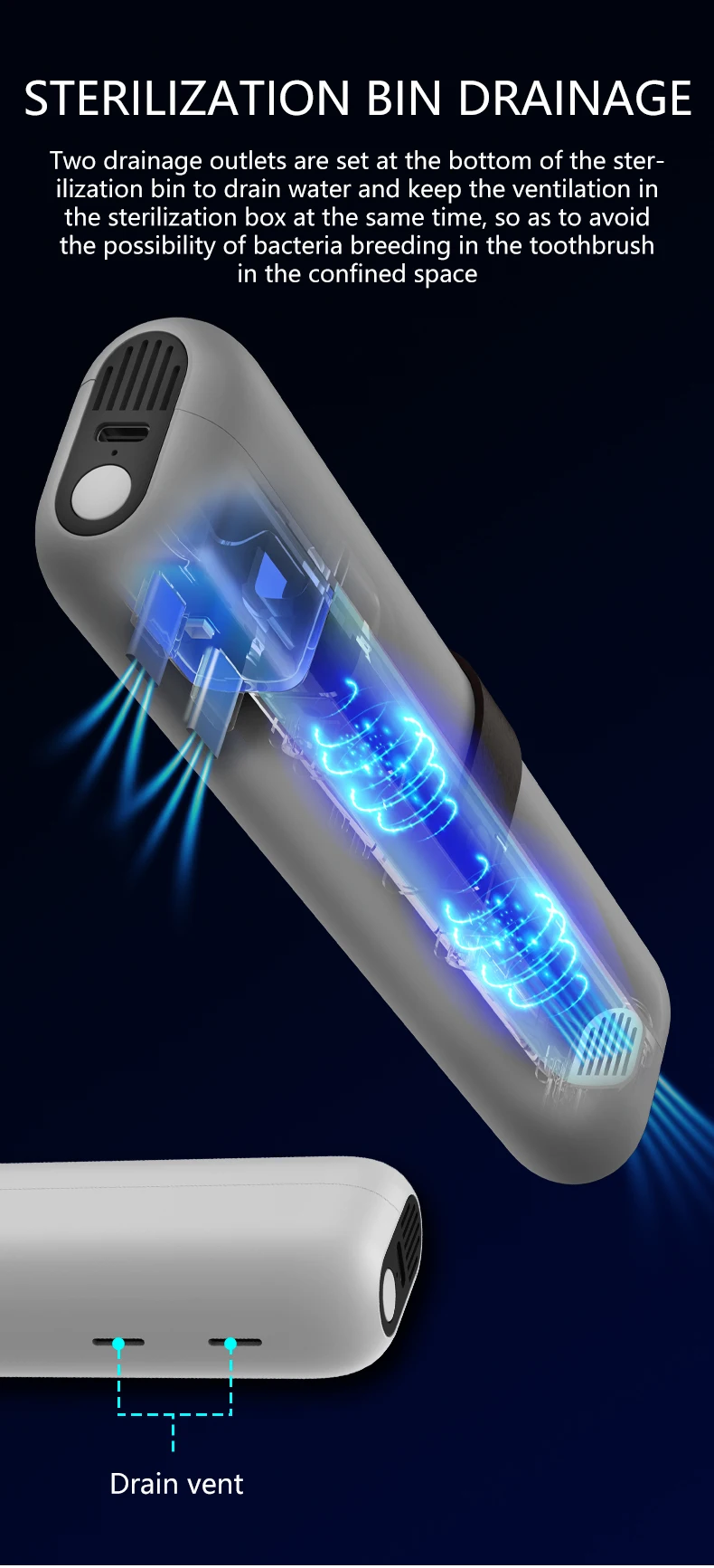 2.Effective Cleaning: Our toothbrush case not only effectively sterilize your toothbrush, but also keeps it dry with 2 built-in drainage ventilation vents,and helps reduce unpleasant odors, prevent oral diseases, and avoid other oral health issues.