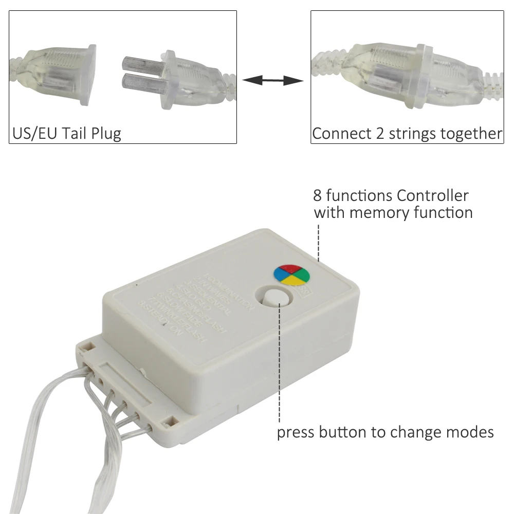 - Light Colors: Warm White / White / Multicolor / Blue
