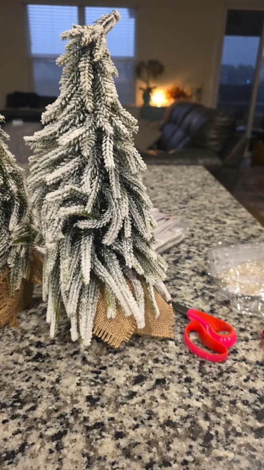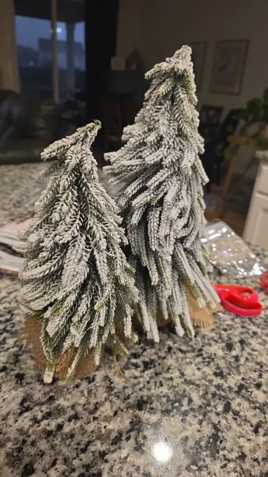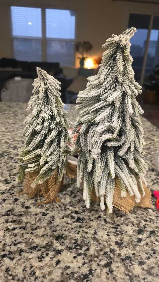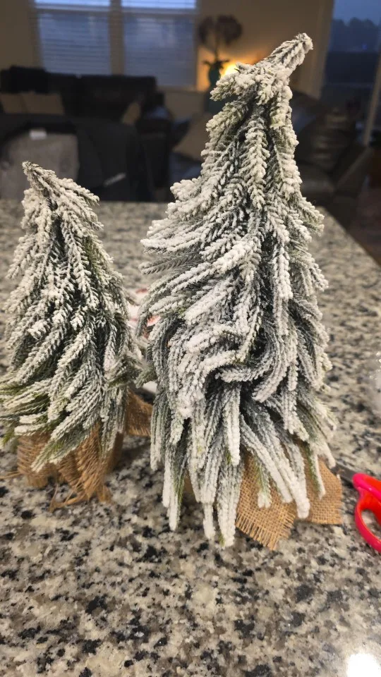 BEAUTIFUL DESIGN: With the snow flocked branches, pine cones, holly berries and burlap bag base, this table top Christmas tree looks classic and realistic. The warm white LED string lights makes the tree even more beautiful and bring your home and office more Christmas atmosphere.