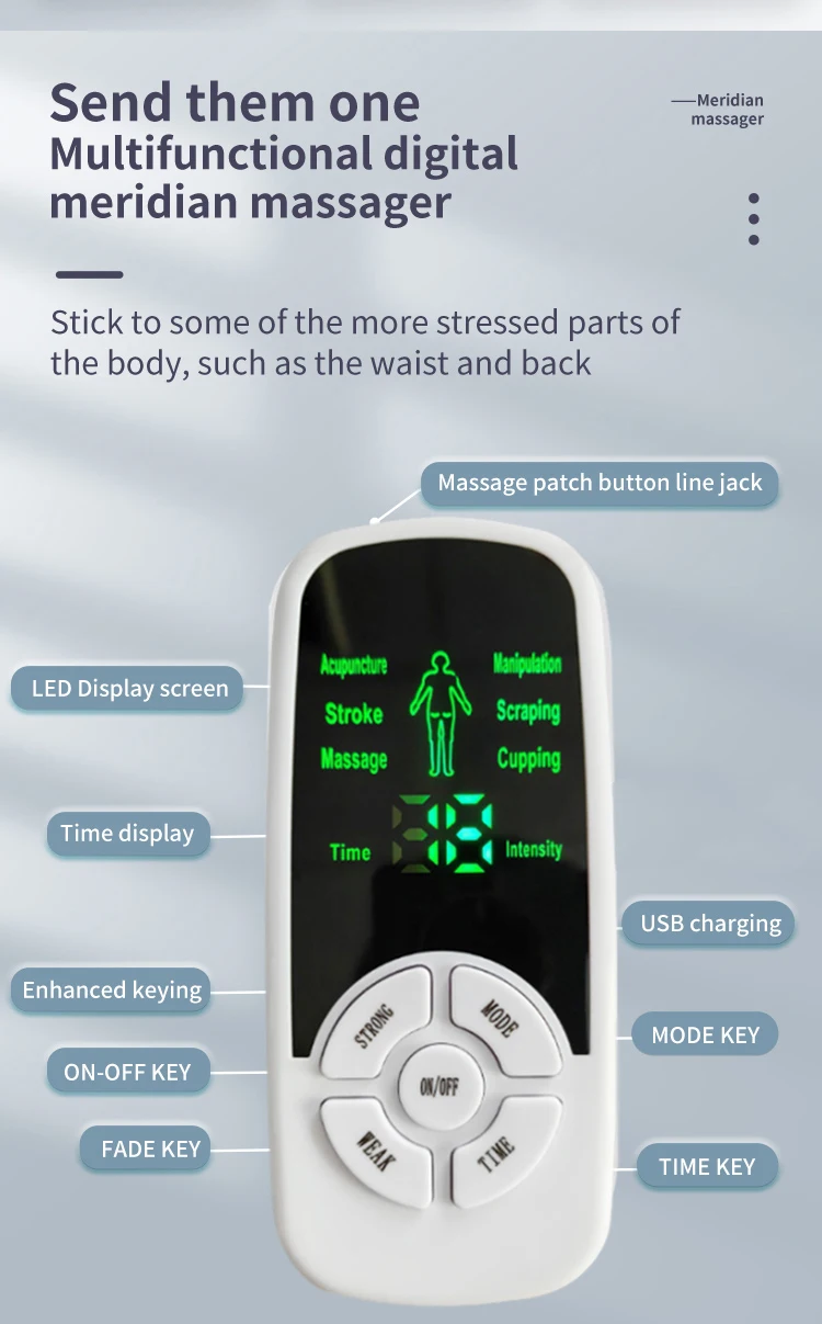 The Multi-Functional Pulse Electric Muscle Stimulator is a full-body physiotherapy and relaxation device designed to relieve muscle tension, improve circulation, and support deep recovery. Using advanced TENS and pulse massage technology, it delivers targeted electronic pulses that help reduce soreness, stiffness, and fatigue across the back, shoulders, waist, legs, and arms.