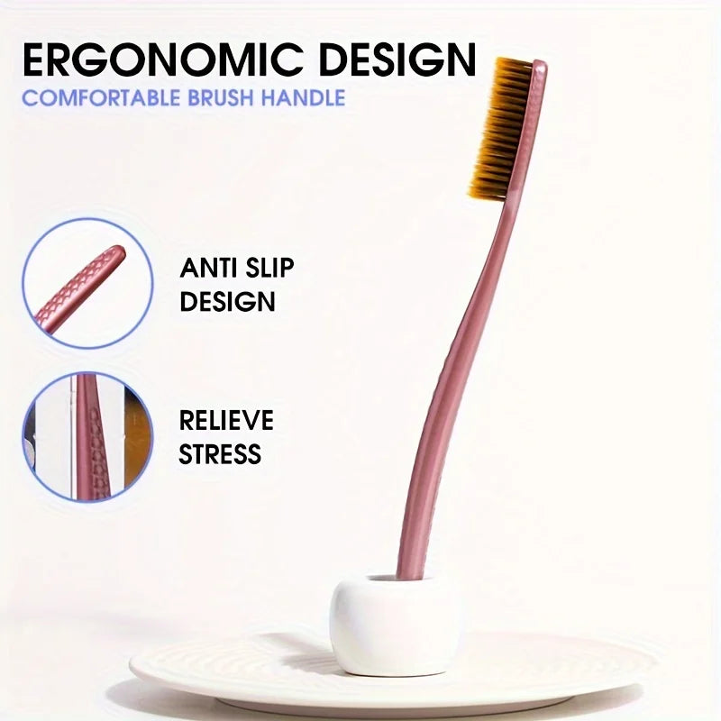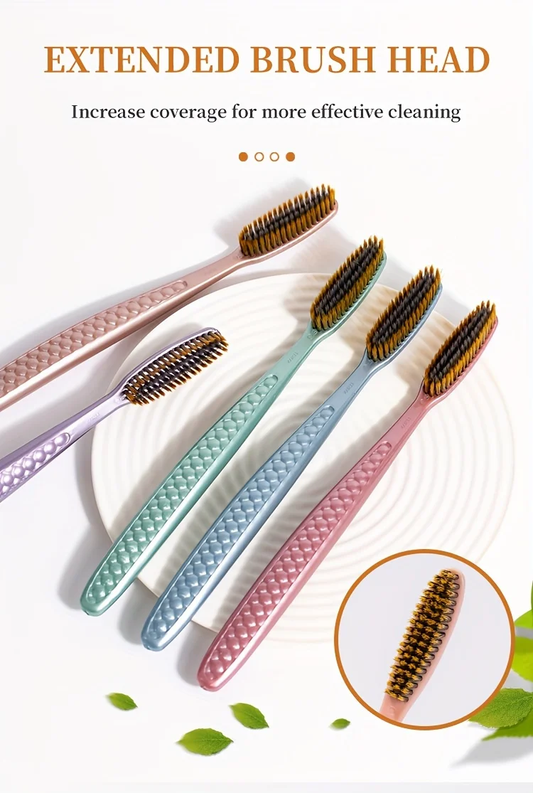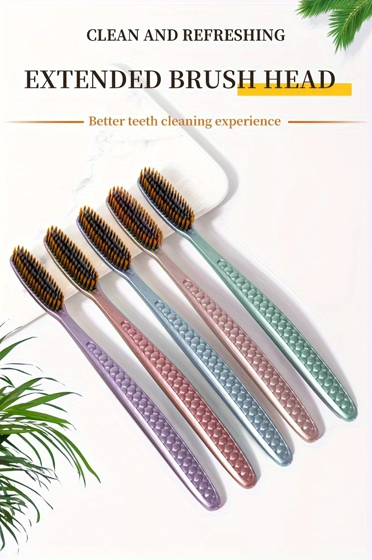 soft hair toothbrush 5pcs bag with curved extended brush head for deep oral cleaning in 5 colors for adults,