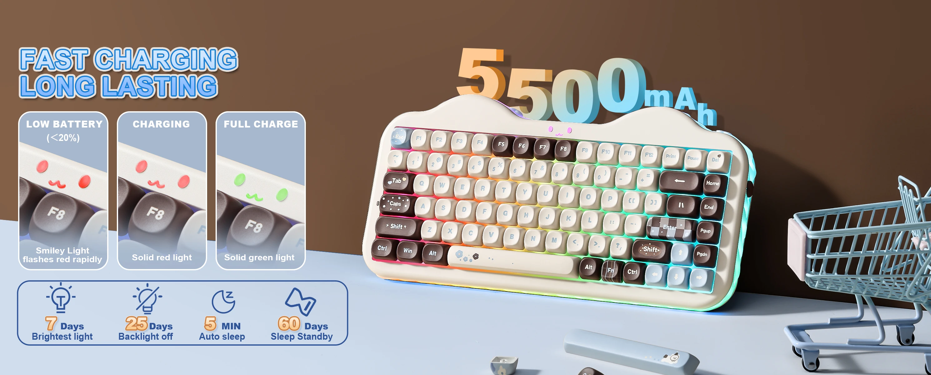 Custom Keyboard with 5500mAh Large Battery